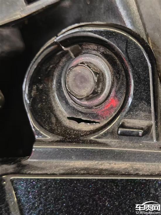 提车半年后杠左侧突然翘边,到店调整。今年6月份想再次调整后杠时发现两侧螺丝固定处左侧开裂,右侧出现裂痕,钣金师傅回答只调整了左侧翘边位置。厂方回应是由外力磕碰导致,不予维修。但实际用车后杠处无任何磕碰。