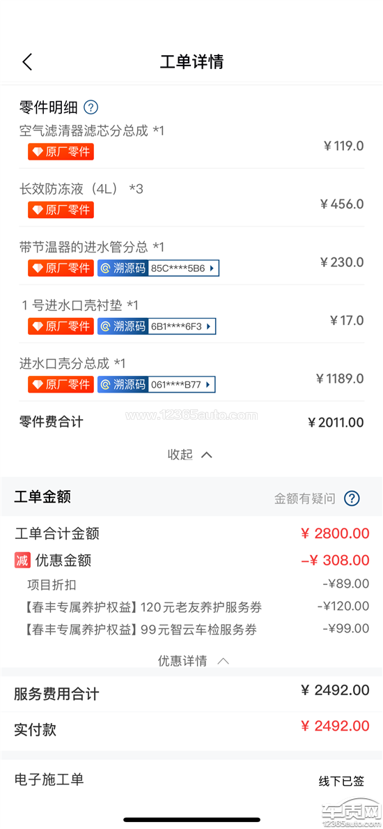 车子行驶里程109471公里,发动机报故障码,经4S店检测,电子水泵出现卡滞现象,本车历年来的保养维修均在4S店完成。经网络、车友群查询了解,大量车主反馈电子水泵问题为“通病”,设计缺陷:水泵叶轮材质或电子控制模块存在质量问题,易导致叶轮卡滞。引起水温升高,严重时拉缸损坏发动机。因本人车已修好,要求厂家承担维修费用,共计2492元。