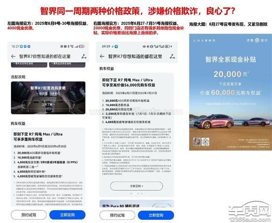 本人于6月12日从该门店下单r7,当时销售一直说这个车很保值,一再强调上市之后都没有优惠,待我下单后,6月25号提车之间,都没有提要降价的事。我25日停车以后,第二天26号一大早官方就发布了降价两万的信息。明明官方宣传的政策到6月30日,为什么可以突然26号就变了?是否涉及虚假宣传?同时在后期对接销售时,在28号后他们统一口径,说自己都不知道降价,同时开始不再理睬。要求官方对于近一个月购买r7车主进行补偿。