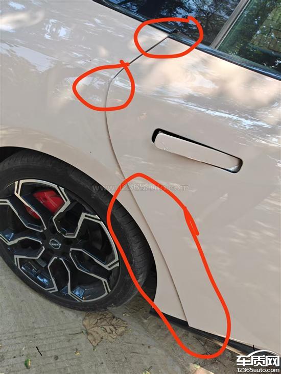 提车第一天,后座膜都没撕也没坐人,主副驾两人平均60公斤。过个坡,无碰撞事故,颠一下后车门错位关不上。去店里检查出车架变形。