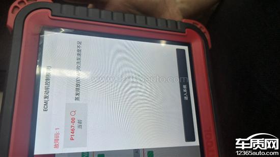 发动机故障灯亮,检查是吹洗泵故障,这是质量问题,此款发动机通病,联系售后不予维修。