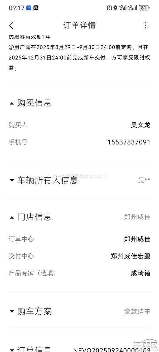 我与2025年9月24日在东风日产郑州威佳专营店,地址河南省郑州市惠济区花园路开元路省汽贸中心北门1号,交付定金5000元,定的车型是N7625pro版本,9月26号4s店交付的车型是N7625max版本,交付车型不一样,要求退款,4s店不退,各种协商就是不退。