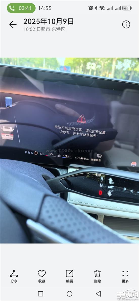 别克GL8,开启电量保持后,车子出现报警电驱系统温度过高,踩油门不走,动力消失,要求处理。