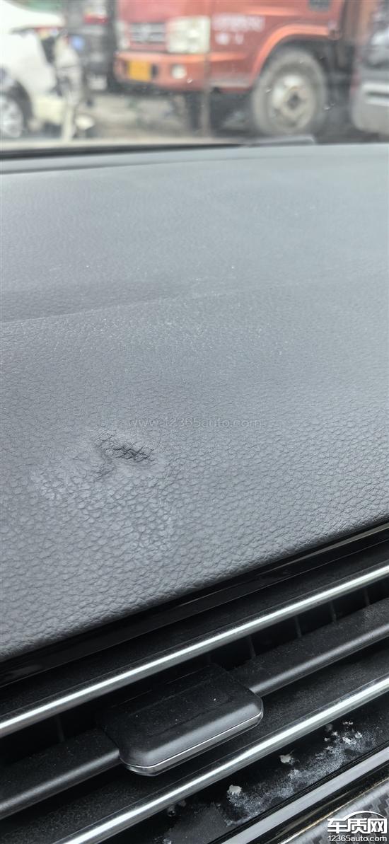 仪表台无故凹陷,主副驾门把手塑料件表面崩坏。