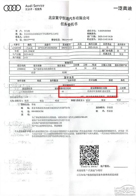 一汽奥迪厂家回复:您好!经销商已第一时间联系用户,并就解决方案与用户协商,目前正在协商中。感谢您对一汽奥迪的关注!