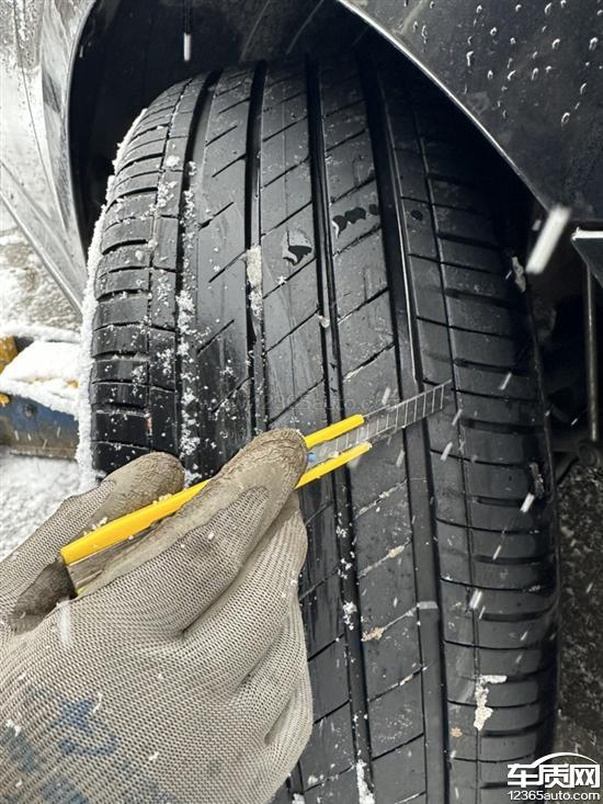 四条轮胎明显磨损吃胎不正常,4s店说属于正常磨损说我测量位置不对,从照片就能看出来很明显深浅不一样,视频太大传不上去,修理厂拿刻度尺测量过,确实磨损吃胎严重,去4s店里售后拒不承认非说属于正常压根没磨损没吃胎!