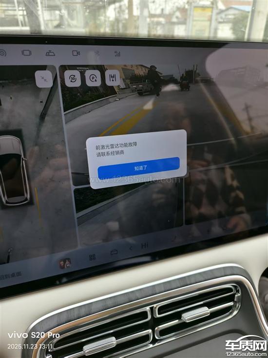 我是9月27号在这家4S店订车,约定45天后不能提车可退定金。11月13号通知车到了,约定18号去看车付尾款。18号早上4S人员开M9载我从货场至售后途中,车机屏幕跳出前方激光雷达功能故障报警栏,销售说系统软件升级就好了,我就信了没再深究。看完车付了尾款开了发票。后通知我21号上牌,上午还是之前的这个销售开着M9载着我去车管所上牌路上,车机屏幕再次跳出前方激光雷达功能故障报警,但我心里以为还是软件的事,他作为4S店人员明知是已经经过PDI检查过的车还报故障肯定是不正常,他并没有中止车辆上牌,最终导致这辆有故障的车到了我手里。后来23号车机再次报故障被我用手机抓拍到发给4S店,约了到店检测诊断电脑读出两条故障代码,所以我认为19号PDI检查4S店也读到了故障代码但被他们处理了。因为23号他们进行了系统升级并断电后做PDI自动电检竟然也过了。但我开走车后当晚回家自动泊位功能仍无法激活,24号一早车机再次报前方激光雷达功能故障,4S店让我再去店里检测,这次他们诊断并与技术总监确认了说是激光雷达硬件模块坏了,给出的方案是需要拆掉前顶棚和盖子更换雷达模块。我不同意,要求换一辆新车,激光雷达终身质保,一定的关怀补偿。因为激光雷达是智能网联汽车的核心部件,不同于传统燃油车,牵扯到主动避障制动的主动安全功能,必须换新车不能拿生命开玩笑。第二吉利厂家品控和检测手段有很大问题造成车带故障流向市场,第三经销商的过错造成这辆故障车卖给了消费者。
