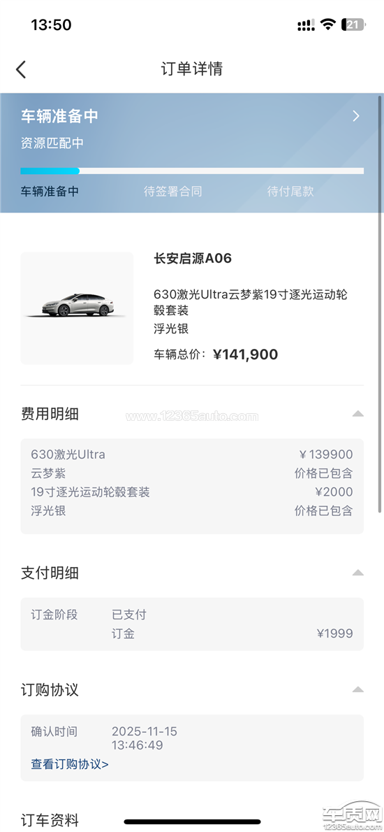 11月8日大订,11月15日锁单,一直没匹配车,中途不管是联系app客服,推给经销商门店,联系经销商,又推给厂家,联系厂家的结果就是没有任何音讯。从订车到现在,没有一个明确的说明,到底什么时候能提车,永远是几方互相踢皮球!我的诉求是尽快交车!