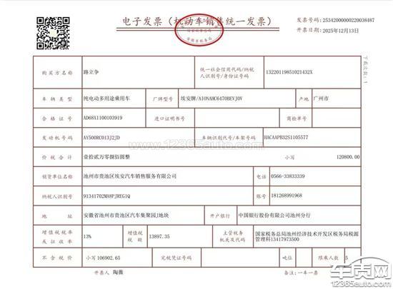 埃安厂家回复:感谢您选择埃安,您的信息我们已经收到,会安排当地经销店核实处理,后续您有疑问拨打埃安客服专线:400-188-3333,或者通过埃安APP专属服务群跟我们反映,我们将竭诚为您服务。