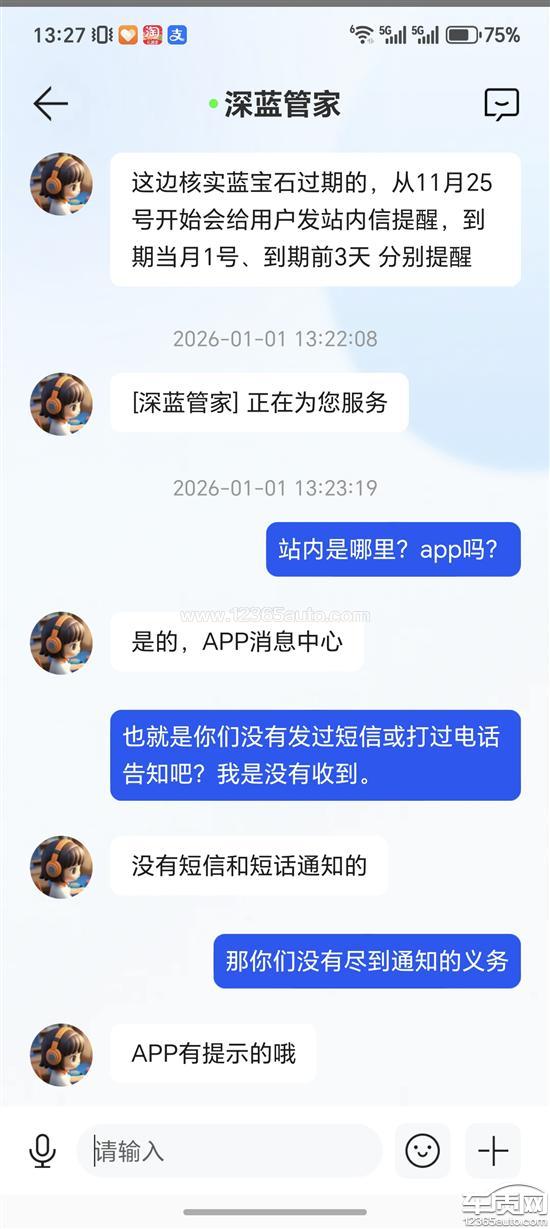 本人于2023年10月购买深蓝S7增程版车型,购车时获赠20万蓝宝石(可在深蓝APP商城消费),其有效期为两年,于2025年11月到期并被系统自动回收,而我尚未充分使用。就此问题咨询平台客服,对方仅以“抱歉”敷衍回应,未进行有效处理。针对此事,我提出以下几点质疑:首先,APP内蓝宝石数量显示界面未标注各笔蓝宝石的获取时间及到期日,用户难以自行追溯,长期使用后更无法清晰掌握即将过期的蓝宝石信息。其次,不认可深蓝仅通过APP内通知进行提醒的方式——该通知需主动点击进入才能查看,而我习惯使用车钥匙解锁,日常极少打开手机APP,即便充电时使用APP,也未必会特意查看通知内容。值得注意的是,上周我的充电桩联网权益到期时,APP推送的消息可在手机顶部弹窗提醒续费,为何回收蓝宝石却无此类显性提醒?这显然存在区别对待。再次,向官方客服投诉时,对方仅强调蓝宝石到期前最后一个月可在APP内查看,但实际操作中,APP界面设计存在明显缺陷,需进入蓝宝石数量详情页才能看到当月到期数量,且若非最后一个月,提前查看无法获知到期信息,如同“隐藏关卡”一般。我认为,深蓝未能履行充分提醒义务,侵犯了消费者的知情权,其蓝宝石管理体系存在严重缺陷、缺乏透明度,直接导致客户权益受损。现要求深蓝退回相应的蓝宝石。