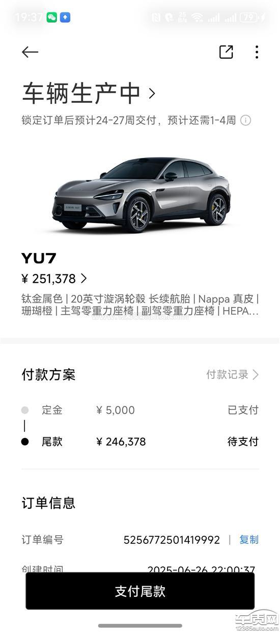 本人2025年6月26日订购小米yu7,APP显示24-27周交付,到2025年11月14日我换交付中心,交付顾问说要重新排产1-6周再交付,截止到今天2026年1月3日,超过了APP显示最久27周交付时间,也超过了交付顾问所说的1-6周交付时间,小米汽车完全严重违约。