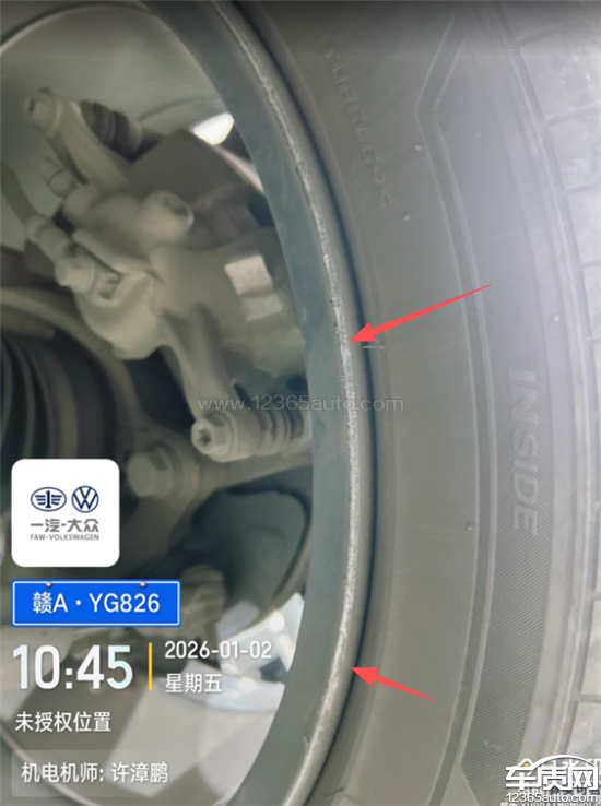一汽大众迈腾轮毂内侧变形 吃胎偏磨