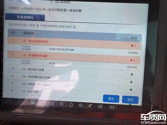 一汽大众迈腾变速箱处于紧急运行状态