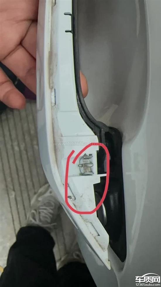 正常打开车门过程中,车把手上的盖子突然断开,检查后发现里面螺丝位置断裂,后检查其余3个门把手,均有松动现象。