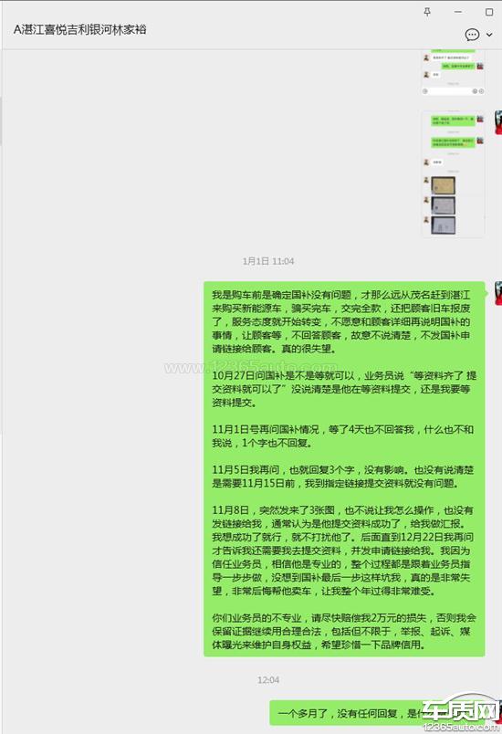 4S店失误导致我损失了2万元国补,并且投诉一个多月了,1个字也没有回复,对4S店与品牌口碑与服务非常失望。
