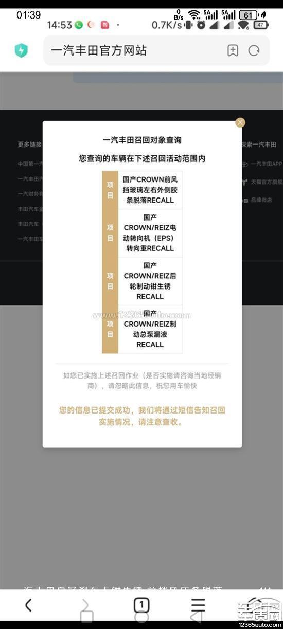 一汽丰田厂家回复:尊敬的车主您好!感谢您的反馈,我们已经收到您的问题,建议与经销店保持沟通。