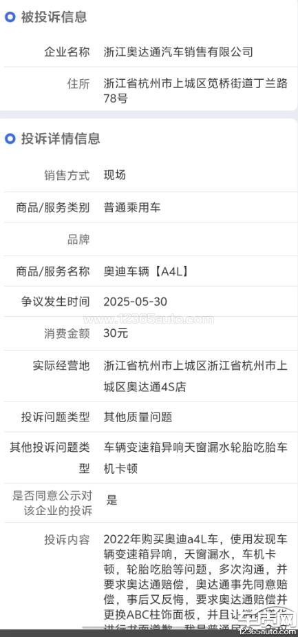 一汽奥迪厂家回复:您好!经销商会第一时间联系用户,并就解决方案与用户协商,感谢您对一汽奥迪的关注!
