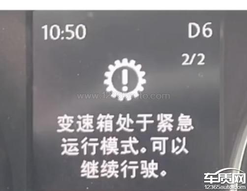 在驾驶大众迈腾车时仪表盘突然显示变速箱处于紧急运行模式,变速箱只有246挡没有1357挡位,突然降速险些酿成事故。