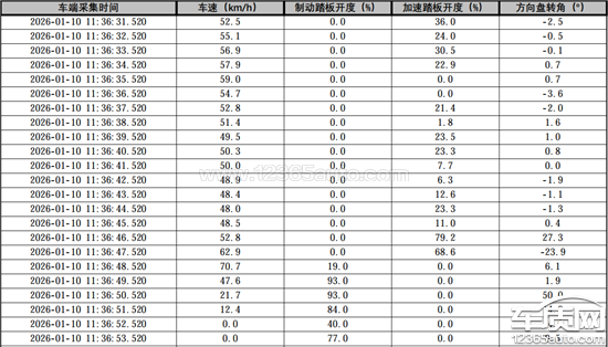 一、情况描述:根据官方数据11:36:52.520时,车辆停止。而通过视频,车辆是一次撞击追尾后,仍继续向前行驶,二次撞击后,甚至在二次撞击把前车又撞了一段距离后,才停下来的。根据视频,一次撞击和二次撞击之间相差1秒。故倒推,一次撞击时间应该在11:36:51.520至11:36:50.520左右,即车速应该在21.7左右。而根据制动踏板开度,11:36:48.520时,制动踏板开度19;11:36:49.520时,制动踏板开度93;11:36:50.520时,也就是第一次碰撞时间左右时,制动踏板开度仍为93,车辆时速按官方数据显示在21.7左右。碰撞速度并不快,但碰撞力度肉眼可见非常大,车辆惯性或者说能量在第一次碰撞中理应已消耗殆尽。然而此时出现诡异情况:我的车辆在11:36:48.520后,加速踏板开度一直为0,也就是全程没有踩过电门。在刹车踩死、未踩加速踏板的情况下,车辆居然继续行驶,1秒后与前车发生二次碰撞,且以低于20码的时速、刹车踩死的状态,把前车又撞出了一段距离,展现出相当强劲的动能。二、疑点描述:1)踩刹车踏板时,没有感受到任何阻力,瞬间就踩到底,这种情况我怀疑是刹车失灵。正常情况下,刹车踏板阻力很高,想踩到93的开度并非易事,且视频中显示,碰撞前车辆没有明显减速迹象。2)一次碰撞后车辆速度不足20码,此时制动踏板开度从93降至84,这种情况下车辆居然仍未刹住,继续行驶。3)车辆在十几码的时速时,并未踩加速踏板,正常来说,即便发生追尾,在十几码的时速下也应与前车紧贴,不会把前车撞出明显距离。但视频中二次撞击时,力度仍然很大,将前车又撞出去一段距离后,车辆才终于出现刹车时的点头迹象。此时疑似存在电机仍在输出动力的情况,才能造成如此大的撞击力度,然而整个过程中加速踏板开度一直为0。