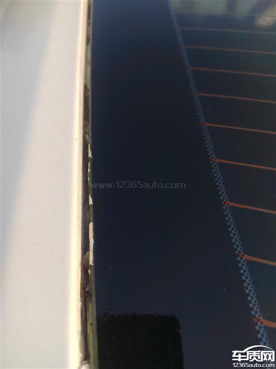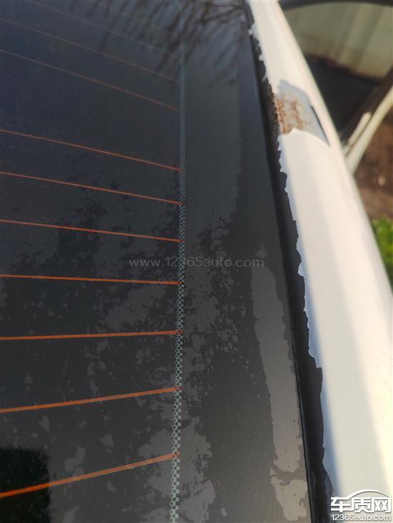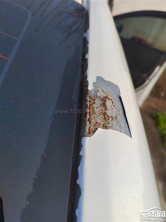 后挡风玻璃两侧车漆脱落严重,顶棚两侧凹槽车漆脱落