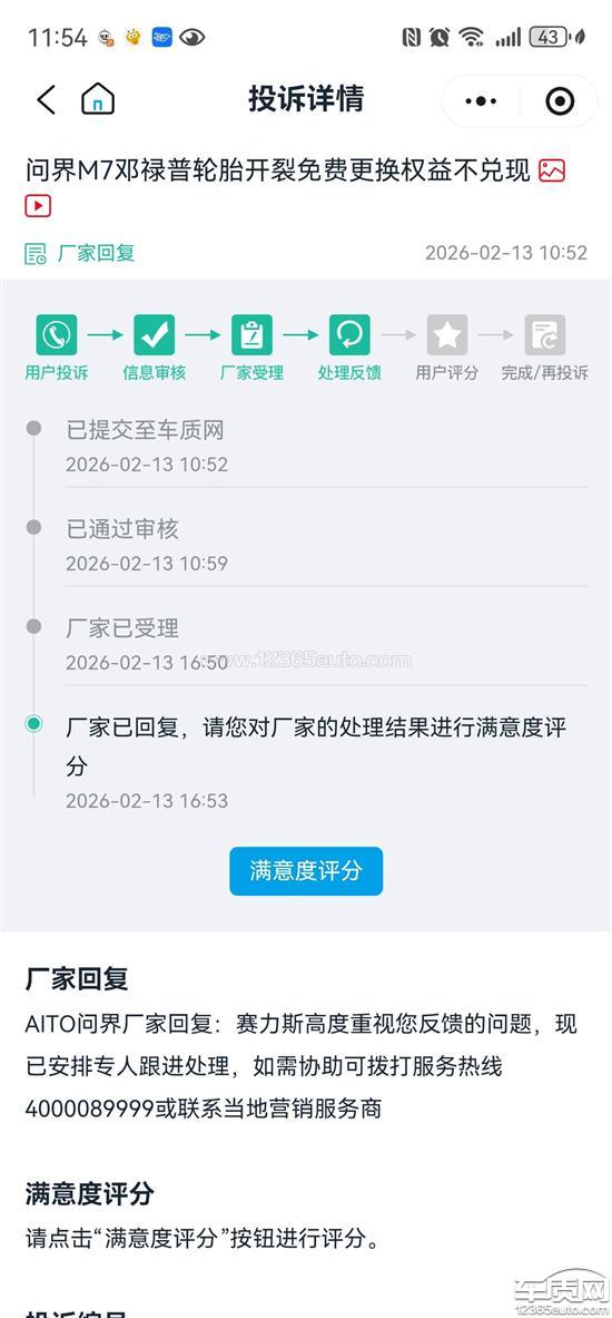 AITO问界厂家回复:赛力斯高度重视您反馈的问题,现已安排专人跟进处理,如需协助可拨打服务热线4000089999或联系当地营销服务商。