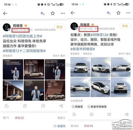 一、基本情况本人于2025年12月28日提车阿维塔12四激光版。本人选择该车型的核心诉求,源于其原创设计语言、内饰氛围营造以及智驾能力(含硬件配置与软件支持)的综合呈现。为此,本人自2024年末开始关注该车型,等待近一年方最终下单。购车时,销售明确告知该车型为2025年10月底发布的最新版本,短期内不会推出新款,且该车至今在汽车之家、易车等平台均被标注为“26款阿维塔12”,进一步加深了本人对车辆版本稳定性的信赖。二、关键事实(一)极短期内的重大改款2025年10月28日,阿维塔官方发布阿维塔12四激光版;仅时隔73天(约两个半月),于2026年1月9日即推出2026款大改款车型。本人提车至新款发布仅仅只有12天,车辆即从“最新款”沦为“老款”。(二)核心配置存在显著代差新款车型在激光雷达、电池、车机芯片、动力架构等核心硬件上实现全面升级,与四激光版形成明显代差。具体对比如下:①激光雷达:从96线升级至896线,性能提升9倍以上;②电池:从2.2C升级至8C,充放电性能提升约3.6倍;③驱动系统:新增后驱双电机、四驱三电机版本,动力架构实现重大升级;④车机芯片:完成大幅迭代升级,算力与性能全面超越。需要特别指出的是,作为本人购车最核心关注点的智驾系统亦被全面超越,导致提车不足半月,车辆核心配置即全面落后,购车初衷严重受损。(三)新款增配,老款反遭减配坦诚而言,本人购买四激光版时,已注意到该版本较此前阿维塔12车型在氛围灯、香氛系统等内饰配置方面存在减配,但彼时并未降价。更需说明的是,2025年第四季度正值国家及地方置换补贴、区域补贴全面退坡阶段,购车成本实际上升。本人基于对阿维塔品牌的认同与信任,仍选择入手该车型,且当时所搭载的三电系统仍为三年前的老版本。换言之,本人是在未享受价格优惠、承担更高购车成本、接受配置减损的情况下,基于对品牌的热爱作出了购买决定(四)惯性思维下的误判,官方末作任何澄清回顾阿维塔12此前的改款节奏,多为小改款或配置微调。2025年上半年,各平台KOC及汽车媒体普遍预测、宣传2025年底阿维塔12将迎来真正的大改款。受此舆论影响,本人及众多消费者均认为,四激光版即是传闻中的年度大改款版本一毕竟上半年5月的小改款我们并末选择,正是为了等待下半年的重大升级。然而,官方在四激光版发布及销售期间,始终未对即将到来的大改款作任何披露或澄清,反而在发布会及宣传中反复强调“最新款”“全新版本”等概念,进一步强化了消费者的错误判断。三、核心诉求基于上述事实,本人向阿维塔科技提出以下诉求,恳请予以正视并尽快落实:(一)公开道歉就此次隐瞒改款信息、侵害消费者权益的行为,阿维塔科技应作出正式回应,正视“73天换代”、宣传误导及清库存等事实,而不是单一由客服回复四激光版本的好处。(二)提供合理补偿方案为所有阿维塔12四激光版车主提供可自主选择的补偿方案,包括但不限于:免费硬件升级至新款核心配置、按购车金额进行合理现金补偿、提供置换补贴等多种方式,以弥补车主因车辆迅速贬值、配置落后所遭受的财产损失。(三)恳请监管部门介入调查恳请相关监管部门对阿维塔科技涉嫌隐瞒改款信息、误导消费者、侵害消费者权益的行为进行调查,依法查处违规行为,维护市场秩序和消费者合法权益。