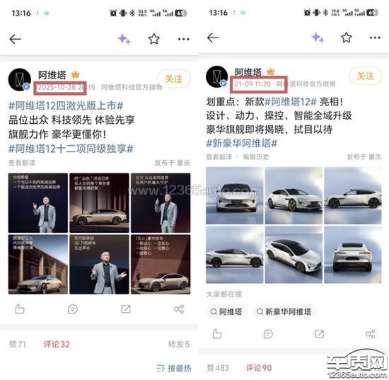 2025.10.28发布的新款,时隔2个多月大改款,激光雷达相差近十倍。