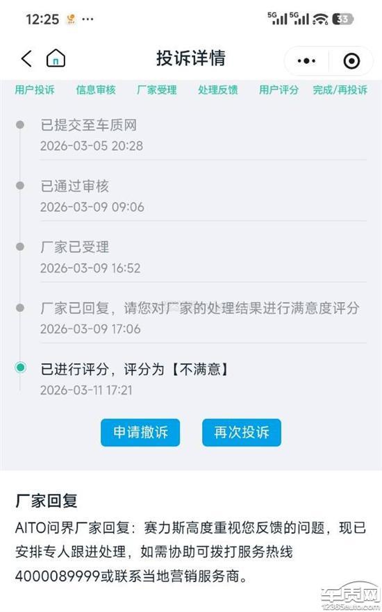 AITO问界厂家回复:赛力斯高度重视您反馈的问题,现已安排专人跟进处理,如需协助可拨打服务热线4000089999或联系当地营销服务商。