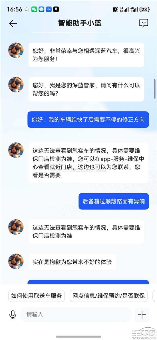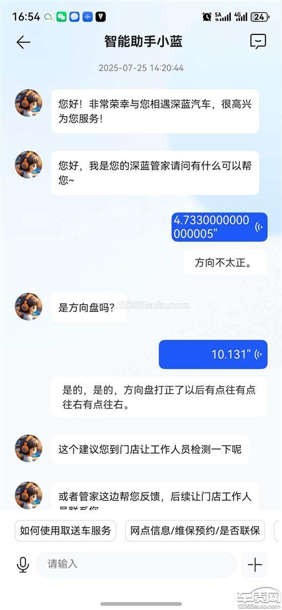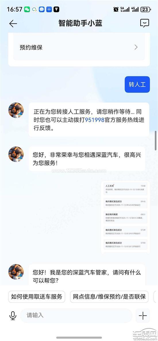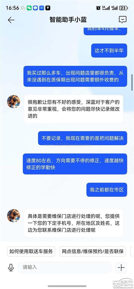 深蓝汽车厂家回复:尊敬的用户,您好!您反馈的问题我们会尽快联系您沟通处理,建议您保持电话畅通。如您还有其他问题,欢迎致电951998或通过“一键管家”咨询,我们将竭诚为您服务!