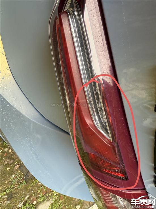 后尾灯一个内部出现烤焦变形情况,另外几个尾灯灯罩出现裂纹。