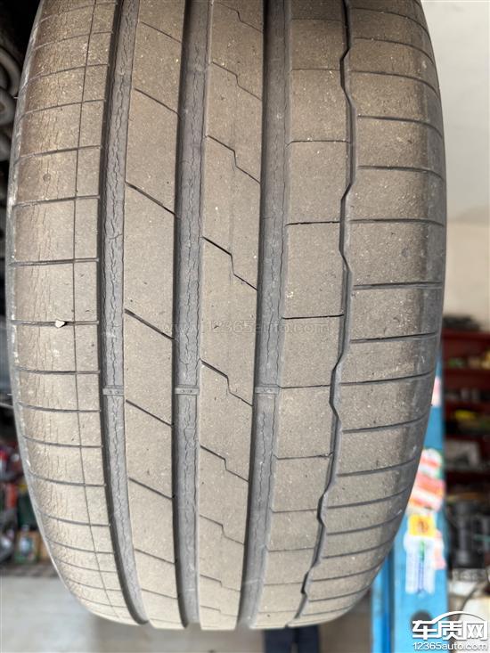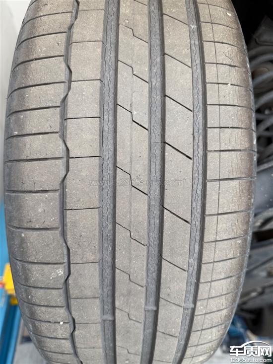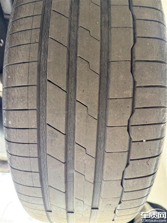 车辆4条轮胎排水槽、胎壁及表面异常开裂并且有砂眼,轮胎颜色异常,过度老化,老化严重。严重影响行驶安全。