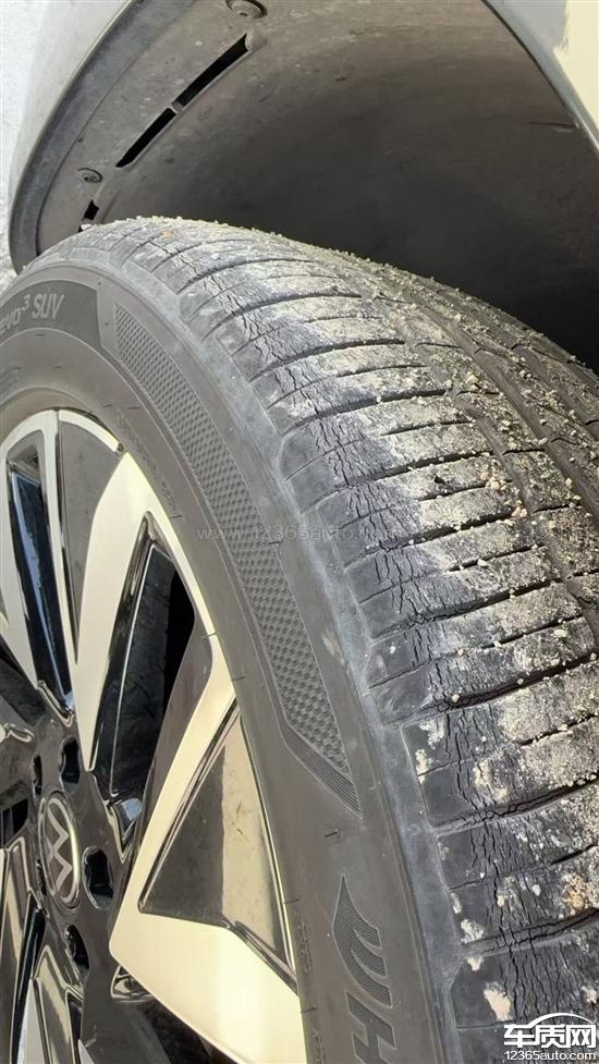 本人于2023年4月17日在新疆巴州库尔勒市一汽大众4S店购买了一台大众探岳汽车,当时成交价格24万余,在使用一年后,该车原厂原车四条轮胎均发生了开裂现象,在使用两年时去4S店索赔刹车片,工作人员也发现了轮胎开裂的现象,当时有拍照,本人为女性,不太懂,问了工作人员说是正常现象,后经查资料及了解后,发现这根本就不属于正常现象,于2026年3月反馈于4S店,4S店回复说,是韩泰厂家回复:车辆受到环境、户外温度、不良路况、过高过低气压、紫外线强度、臭氧浓度等影响导致胎面橡胶加速老化。本人使用车辆在新疆库尔勒市,每天正常上下班,没有过不良路况的使用、这正常使用的情况下,轮胎这样已经影响出行安全,轮胎厂家回复属于强行推诿责任。