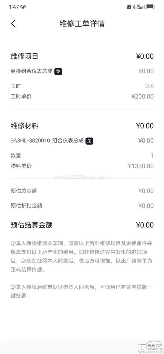 2025年10月14日在此店订新车并交了首付和办理了银行贷款,因店内没有黑色的车,所以约定店方帮忙给办理好牌照,一周后交付提车,我是2025年10月19号去店里提的车并使用至今,2026年4月5号我发现APP内有一个维修记录,在2025年10月17号更换了仪表总成!在新车交付前未告知我的前提下更换了影响安全驾驶的零部件,违反了合同约定,应该提供新车,但是提供了进行了重大维修,更换主要部件的车。并且没有提前告知,伪造授权,没有经过本人同意,擅自维修。