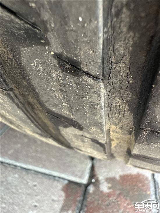 四条轮胎开裂特别严重,已经漏到铁丝了。