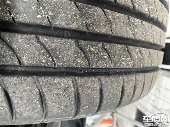 锦湖轮胎多处沟槽开裂。该轮胎原车行驶4.8万公里,其中一半为冬季胎更换后使用,实际行驶距离不足2.5万公里,存在轮胎质量问题。