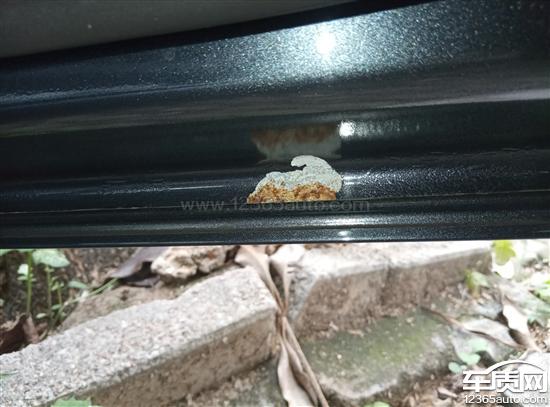 发动机气门室盖前方漏油严重,可见大量油渍。前两个车门下沿内侧排水孔附近存在鼓包、掉漆和严重锈蚀,油漆已脱落。