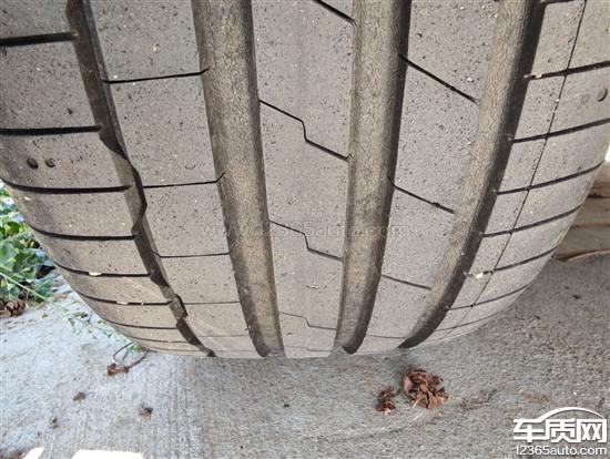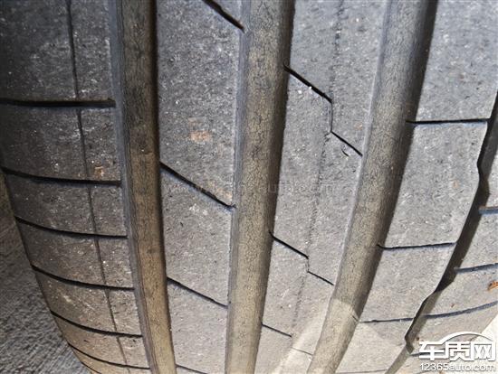 上汽大众帕萨特车辆的韩泰轮胎严重开裂,四条轮胎的排水沟处均有大量裂痕,存在安全隐患。