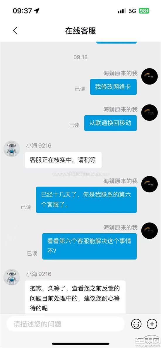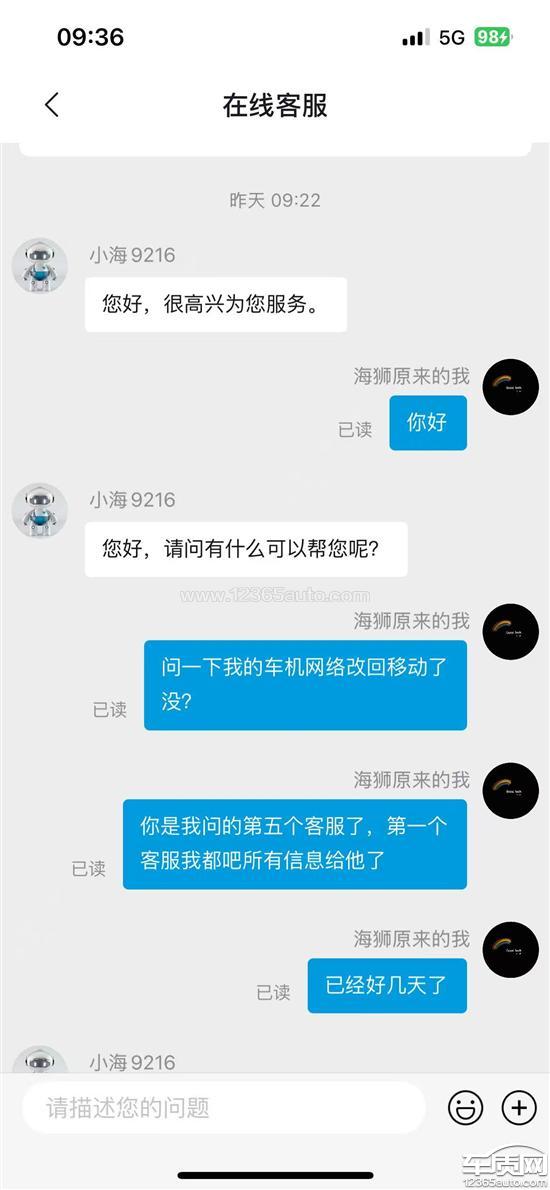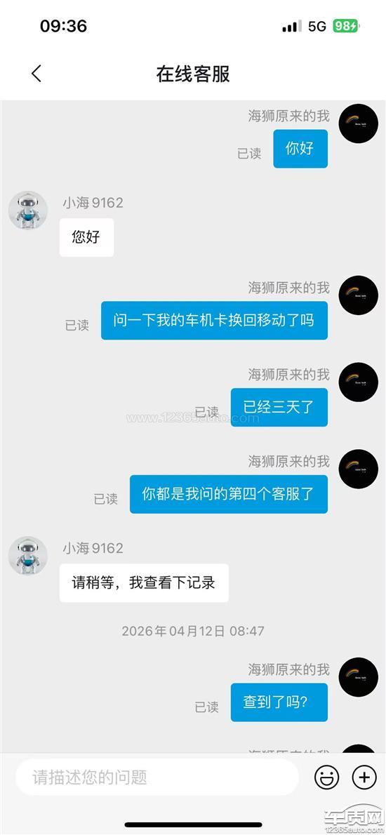 清明节前夕,车机突然出现无信号情况,检查发现车辆内置移动信号卡被私自更换为其他运营商信号卡,该运营商信号在小区地下室、老家均无良好覆盖,信号频繁闪断。起初未联系相关厂家,直接联系该运营商申请改善信号,该运营商反馈此地无基站,增设基站需6个月左右。随后联系车辆相关厂家申请将信号卡换回原移动信号卡,至今已十几天,先后联系多名客服,超过一周仍未完成信号卡更换,现强烈要求将信号卡换回原移动信号卡,保障车机正常使用。