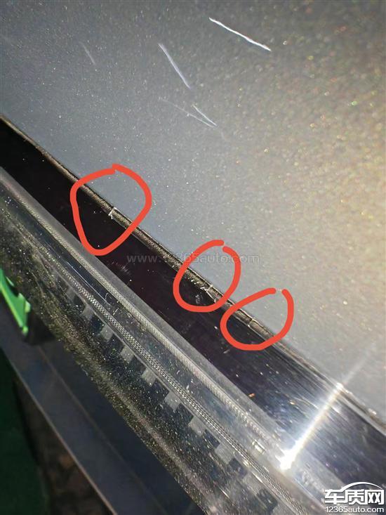 提车的时候也没注意看,后来一个月突然发现尾灯上面有很多小口,我就反馈给4S店,因为这里过去有100多公里,他就说没个事儿,你方便过来的时候再来。后来我去了之后检测。说是等厂家回复。后来厂家回复技术师看照片,他们发过去说是像是外力导致,然后4S店这边也就拒赔吧,就是说,嗯,让我走那个第三方鉴定,说是他们的责任,他们就赔他。如果不是他们的责任,他们就不赔。就是这样子。后来摄像头进水下雨,呃洗车这些发现摄像头有水,他们就回复说是有气孔也正常,但是我们这里很多车友群里面很多车他们都没有,只有我这个有。现在尾灯开始进水了,越来越严重了。