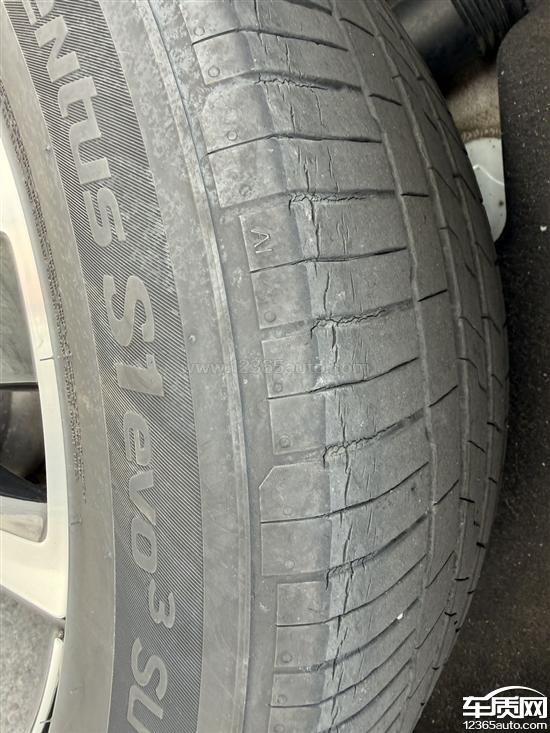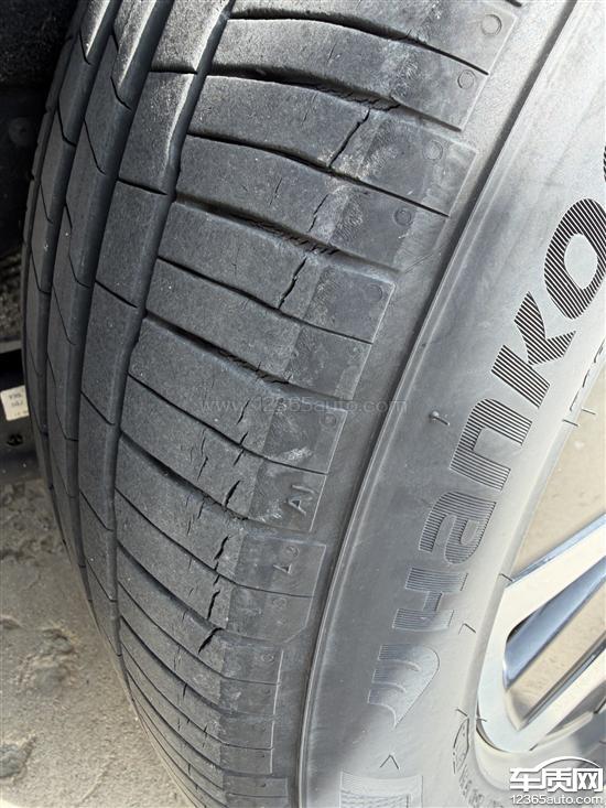 大众汽车轮胎裂纹严重,4S店保养存在明显问题,胎压仅充至2kPa,使轮胎长期处于胎压不足的状态引发更严重的开裂。