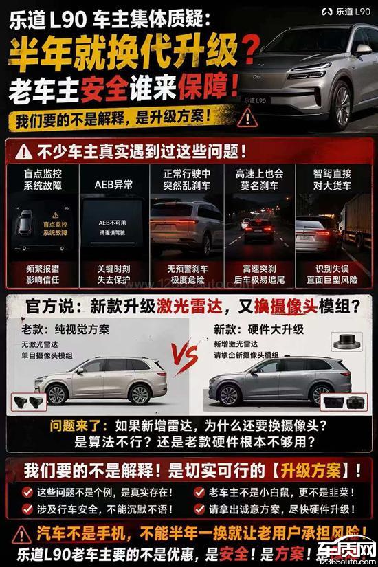 本人是乐道L902025款车主,于2025年11月8日购车。购车仅5个多月,乐道便推出2026款L90改款车型,配置大幅升级却加量不加价,严重侵害了老车主的权益,现正式投诉。一、核心问题(背刺老车主)隐瞒改款计划,侵犯知情权购车时,销售明确告知短期内无重大改款,2025款为最新主力车型。然而,实际仅数月后就推出搭载激光雷达、高算力芯片、智驾系统全面升级的2026款。乐道刻意隐瞒产品迭代计划,让老车主在信息不对称的情况下购车,违反了《消费者权益保护法》。配置大幅升级,老车瞬间贬值2026款新增激光雷达、高阶智驾、更强芯片等核心硬件,老款无法通过OTA升级实现同等功能。同价位下,新车配置碾压老款,导致老车二手价值大幅缩水,早期支持者沦为“弃子”。补偿方案缺失,寒透老车主心改款后,乐道无视老车主的信任与损失,未提供任何补偿方案。二、投诉诉求乐道官方公开道歉,承认对老车主权益的侵害。为老车主提供合理补偿方案,如硬件升级、现金补贴等。建立透明的产品迭代告知机制,杜绝“背刺”行为。另外在首页长期挂着免费降级60度券的活动,购车前口头承诺有该活动提车后,却说是限时活动,但活动一直挂在购车app首页造成虚假宣传。