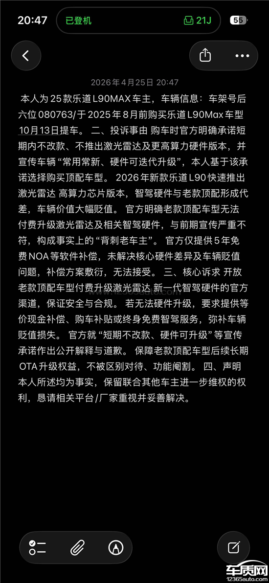 乐道L90刻意隐瞒短期内重大换代计划,背刺老车主。