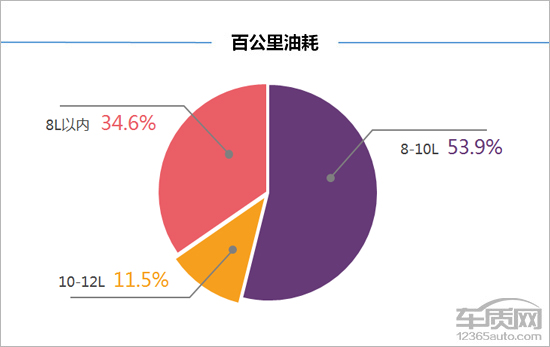 在本期调查所涉及到的车型中,搭载1.5T和2.0L发动机的瑞虎7车型占比较为接近,这两款车型分别搭载了6挡手动和可模拟7挡的CVT无级变速箱,在保障动力表现之余,其油耗表现也获得了消费者认同。在本次调查中,油耗8-10L的车辆占比为53.9%,而8L以下的车辆为34.6%。大多数车主对该车的油耗表示“满意”和“非常满意”。