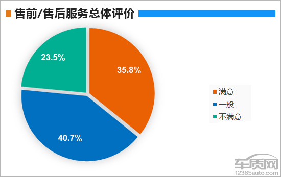 在售前/售后服务总体评价中,接受调查的车主还是给出了客观中肯的评价,其中认为“满意”的车主占比为35.8%;认为“一般”的车主为40.7%;认为“不满意”的车主占比为23.5%。可见,2019款奔腾T77的服务还是能够令大多数车主满意和接受的。