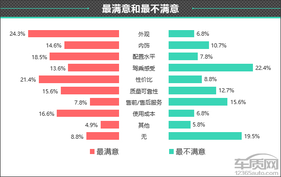 在衡量一款车型驾乘感受如何时,每个人所看重的部分不尽相同。在此次调查中,看重“驾驶和乘坐感受兼顾”的车主占比相对较高。可见作为一款家用紧凑型车,大多数消费者更希望它能有均衡的表现。