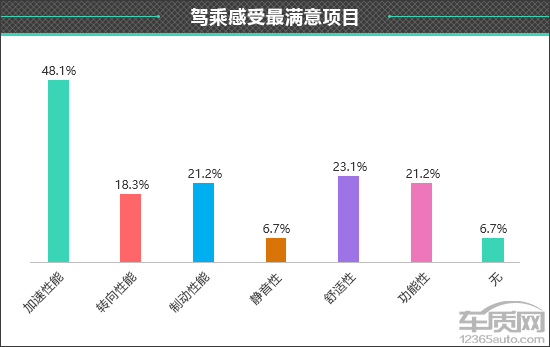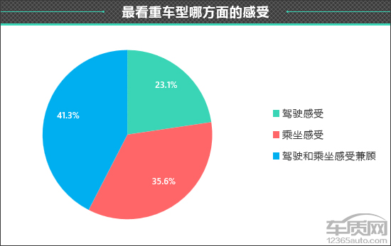 在衡量一款车型驾乘感受如何时,每个人所看重的部分不尽相同。在此次调查中,看重“驾驶和乘坐感受兼顾”的车主占比相对较高。可见,对于这类中型轿车来说,消费者不仅看重驾驶感受,同时也要求其能够具备良好的乘坐感受。