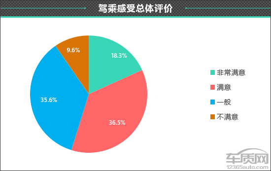 在2023款荣威D7驾乘感受的综合评价中,认为“非常满意”的车主占比为18.3%,认为“满意”的车主占比最高,达到36.5%,认为“一般”的车主占比为35.6%,另有9.6%的受访车主明确表示不满意。