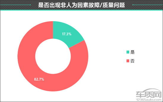 根据调查结果显示,在接收到的104份有效问卷中,有18份问卷显示车辆已经出现过非人为故障或质量问题,占比达到17.3%。