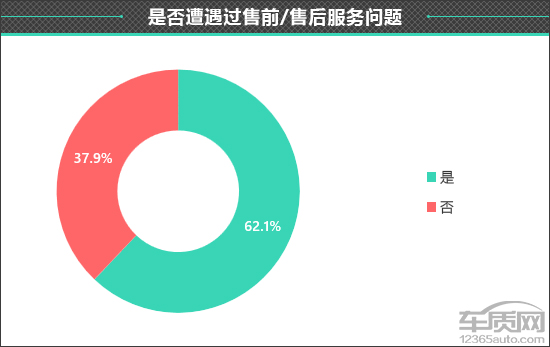 不过,在售前/售后服务总体评价中,接受调查的车主还是给出了相对客观的评价,其中认为“非常满意”的车主占比为6.8%,认为“满意”的车主占比为24.3%,认为“一般”的车主占比为38.8%,认为“不满意”的车主占比为30.1%。