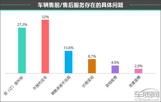 六、售前/售后服务:不按约交车和定(订)金纠纷抱怨较多